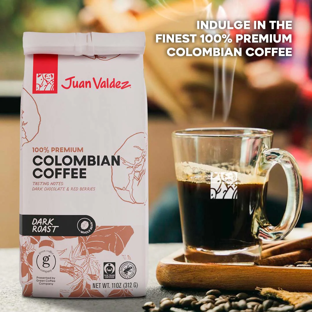 For a full-bodied and bold coffee experience, choose Juan Valdez Dark Roast Whole Bean Coffee. This single origin, specialty gourmet coffee is roasted dark to emphasize depth, smoothness, and a smoky finish with minimal acidity. Grown at elevation in Colombia’s prime coffee zones, these 100% Arabica beans offer rich character and full traceability from farm to bag. The whole bean format ensures the freshest brew possible with customizable grind levels for espresso, drip, or French press. Ethically produced through a farmer-owned cooperative, this coffee is certified by the Rainforest Alliance and Fair Trade for environmental protection and worker welfare. Whether you're starting your day or ending your night, this dark roast delivers strong Colombian flavor with meaningful sourcing.